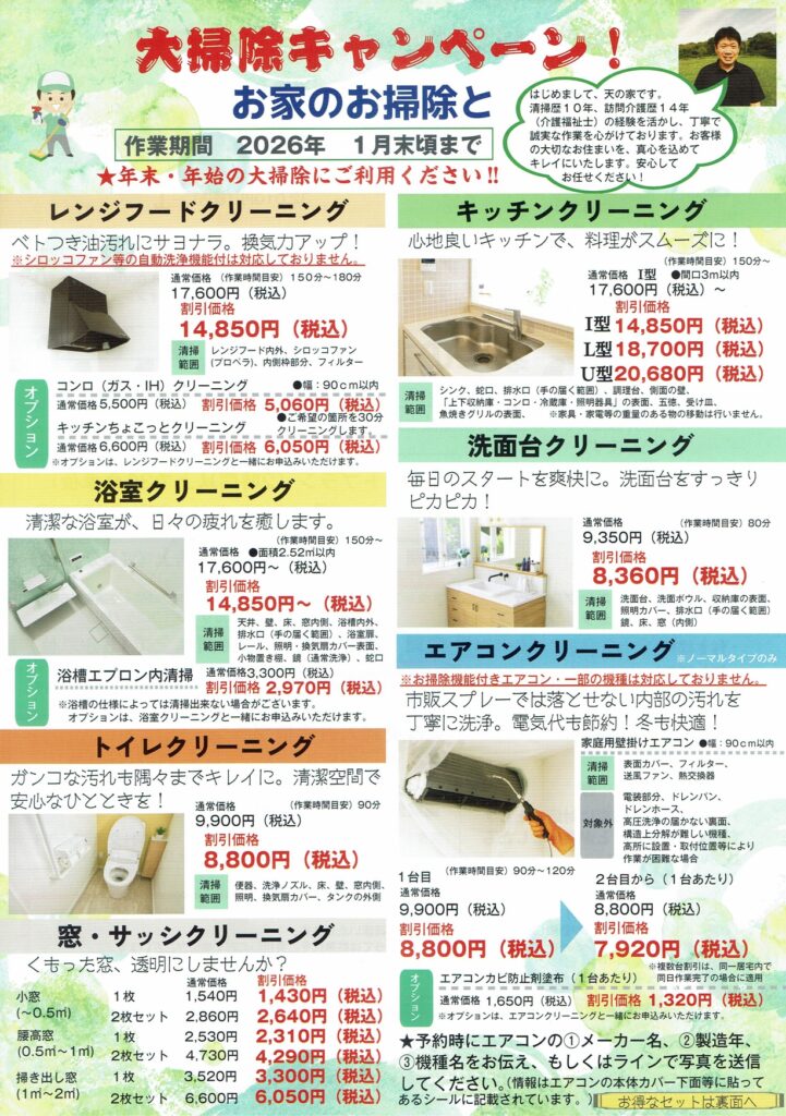 お家のお掃除と(東浦町・大府市近郊のハウスクリーニングは天の家へ!)